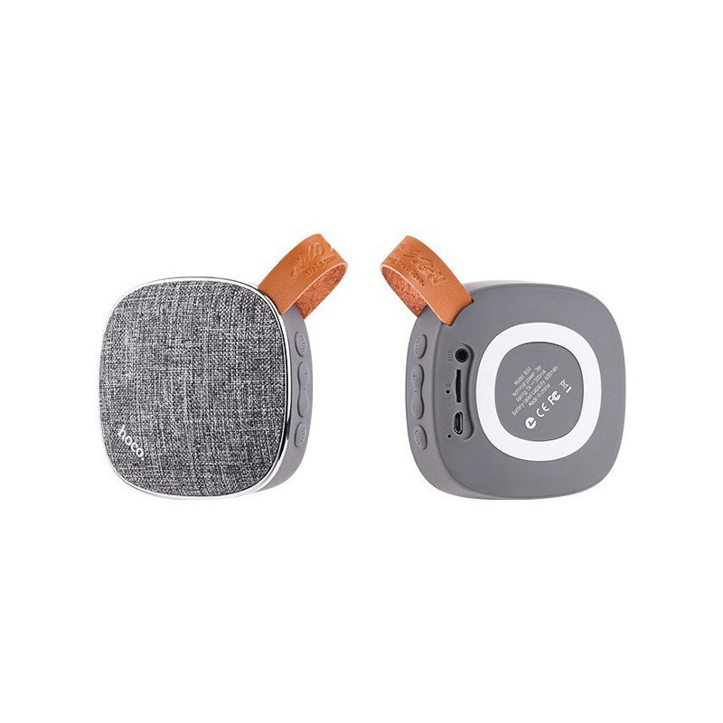 Stylový design tohoto přenosného reproduktoru s mikrofonem doplňuje kožené poutko, díky kterému je vhodný i na cesty. Vrchní část je s textilním vzorem, doplněná o bílé logo Hoco. Na zadní straně se nachází nabíjecí výstup, AUX výstup 3,5mm a slot pro paměťové karty do kapacity 32 GB. Na boční straně pak ovládací prvky pro pozastavení přehrávání, přijetí hovoru nebo ovládání hlasitosti. Nemusíte tak vyndavat váš telefon neustále z kapsy.